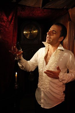 Genießen Sie in unserem holzvertäfelten Weinkeller von 1870 ein Stündchen frei rezitierte Literatur oder wunderbares Theater (max. 17 Zuschauer), dazu Wein oder Sekt nach Belieben.