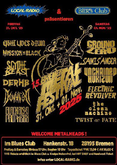 15. Bremer Metal Festival – Popmetal / Metal & Punk / Hard ‘n’ Heavy / Heavy Metal / Rock, Emden / Oldenburg / Hannover / Wilhelmshaven / Speyer im Meisenfrei